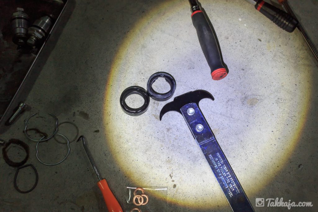 構造的に漏れないし、支障ないんと思うんだけど、もう一度部品注文してから、タイヤ交換と一緒に片方だけやり直します。w
