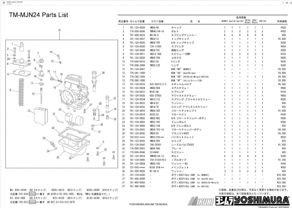 せっかくなので前から気になっていた、ヨシムラキャブのニードルバルブを交換しようかと思い、調べていると、なんと対策部品がでているのではないか!