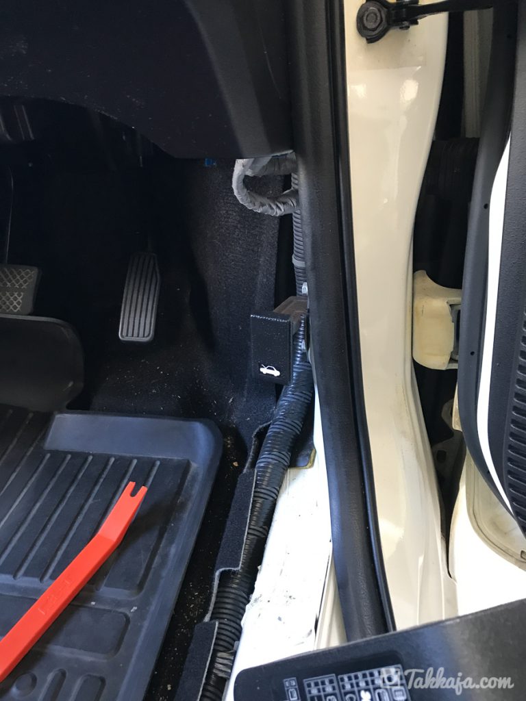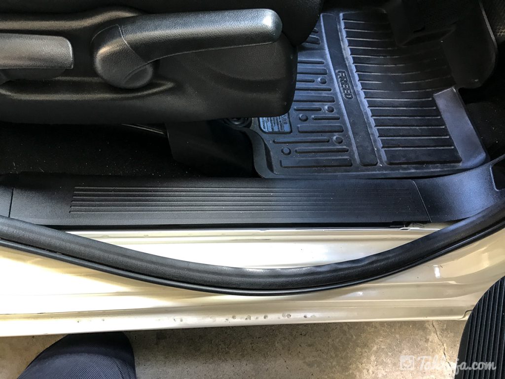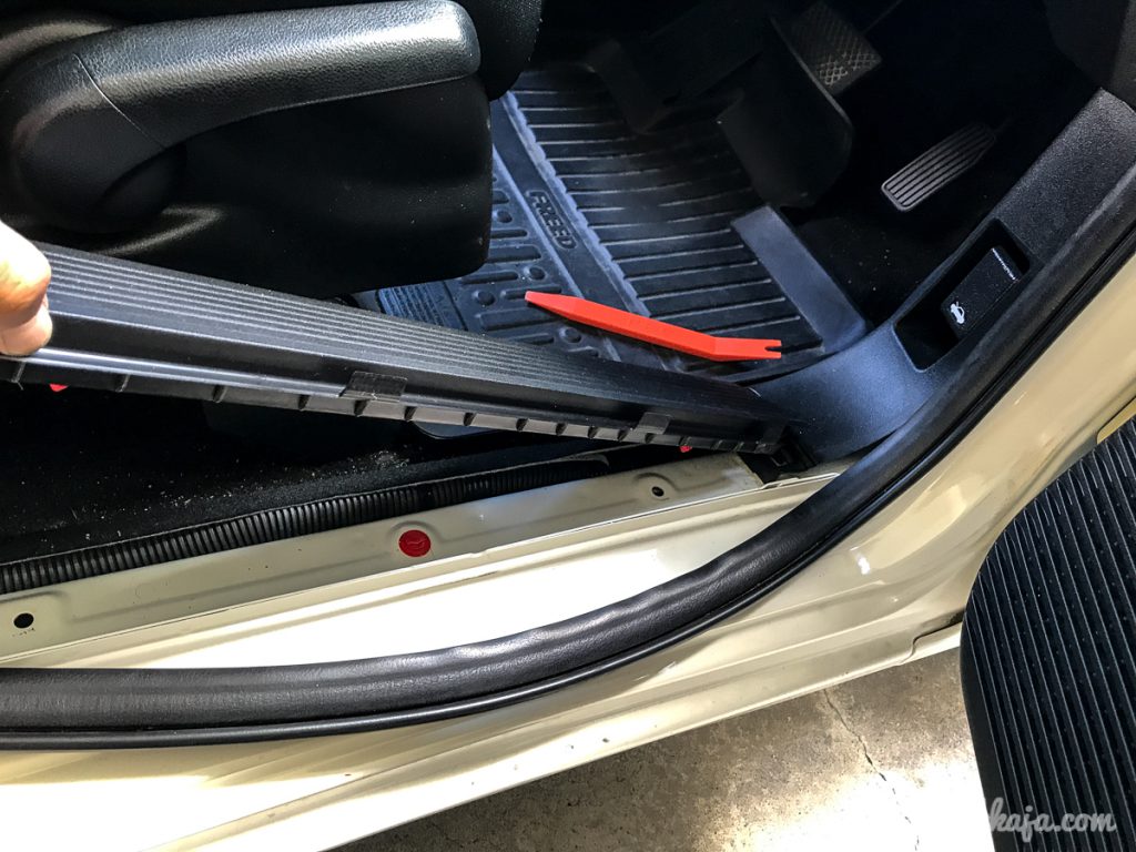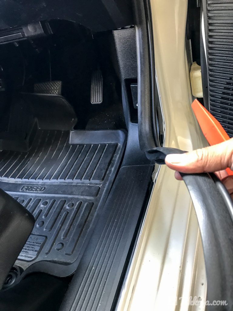 運転席横のウェザーストリップを外します。