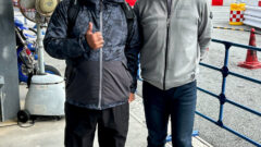 八重岳から桜と、遠くに見える伊江島を入れ込んだ写真