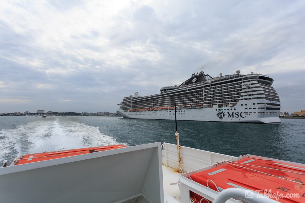 途中、港内でクルーズ船とすれ違います。