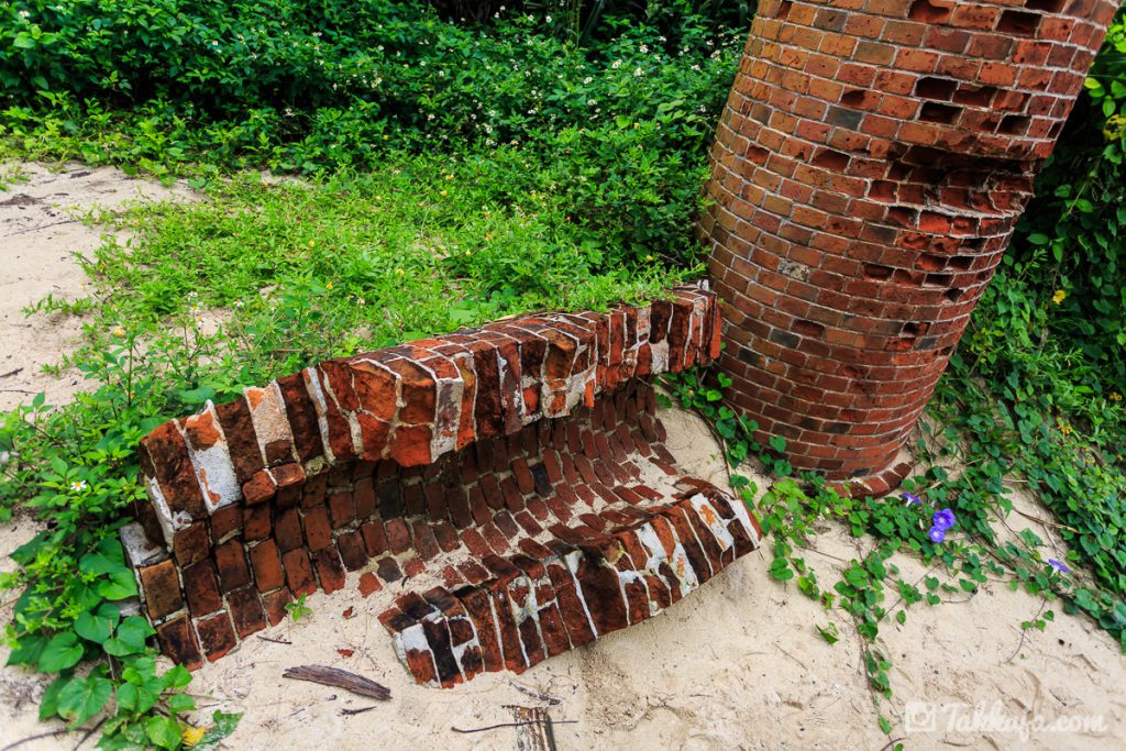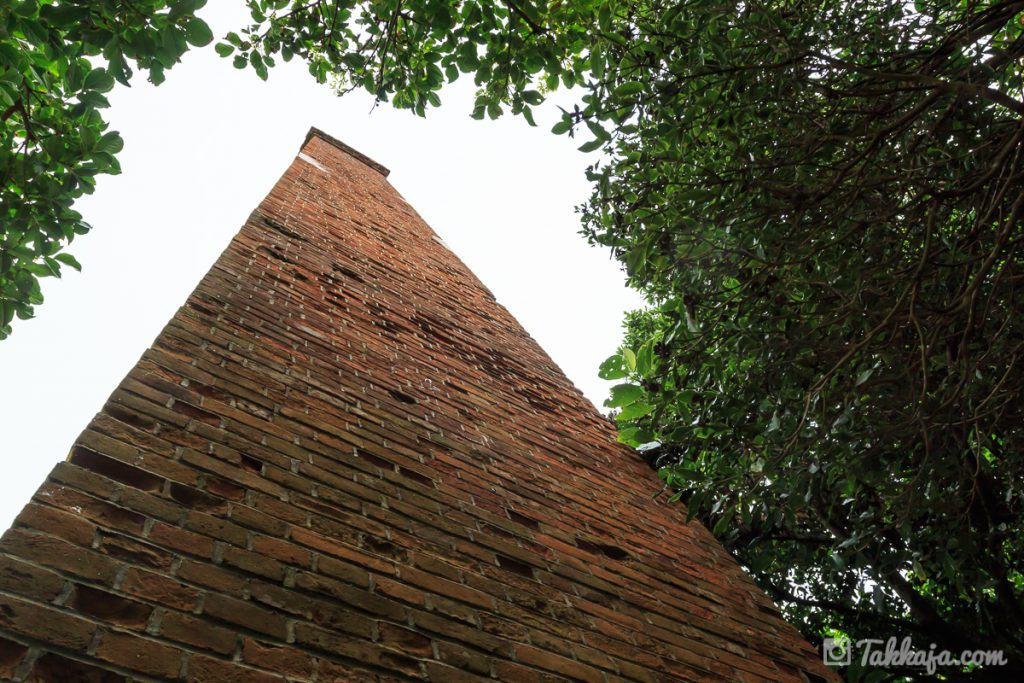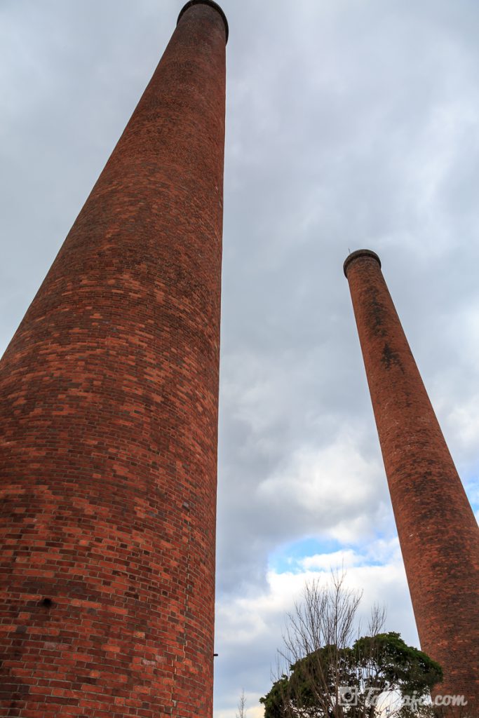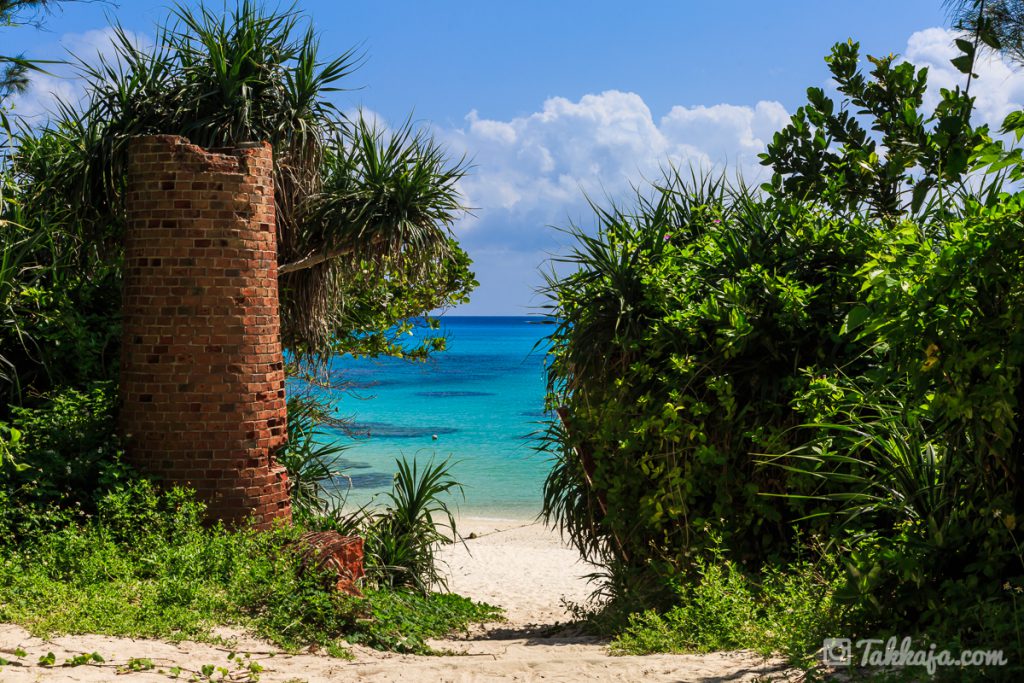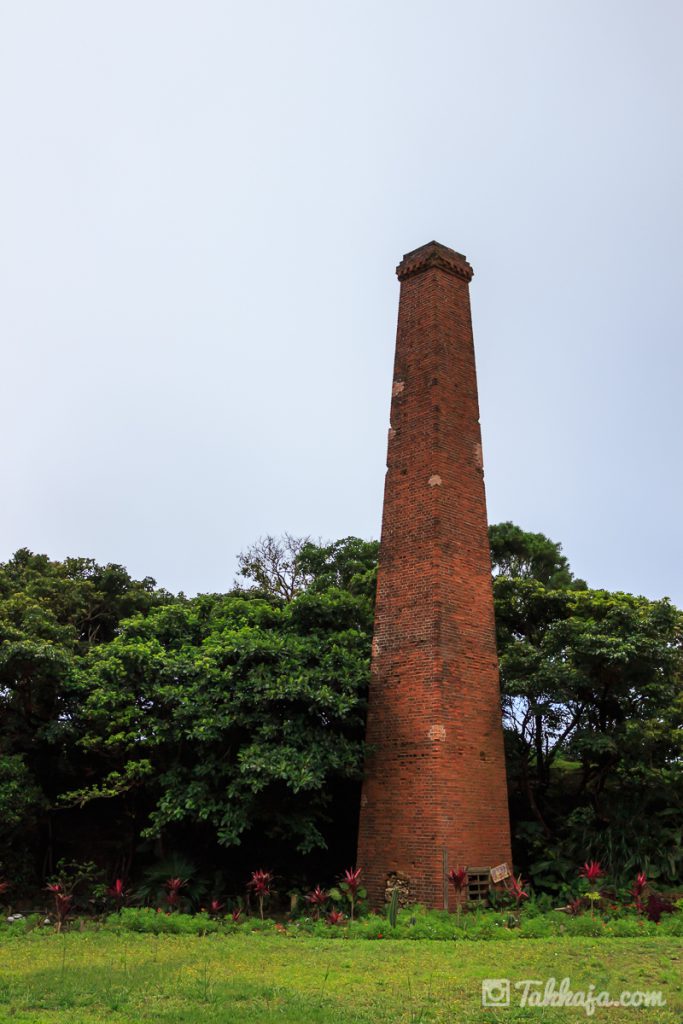 ビーチの手前にあり、フォトジェニックなレンガ煙突