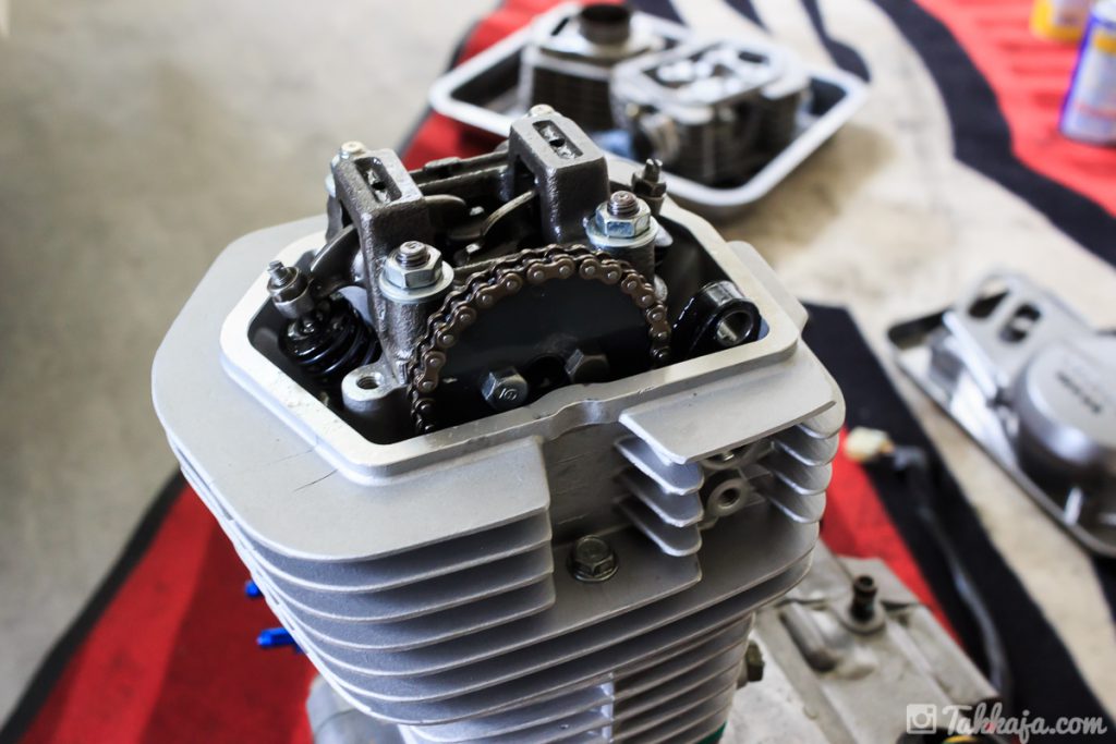 きちんと位置合わせしてカムチェーンを再度かけ直し