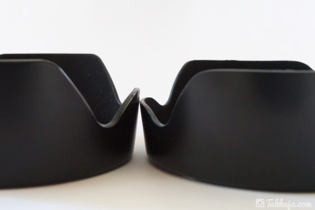 ネットでは、この組み合わせの場合、若干のケラレが発生するとの意見が多かったのですが、上の記事で検証した際は、ワイド端で若干のケラレが発生するものの、実際は光学補正を適用したら端が切られてしまうので、実質的に問題ないだろうという結論に至り、1年以上そのまま使用していました。