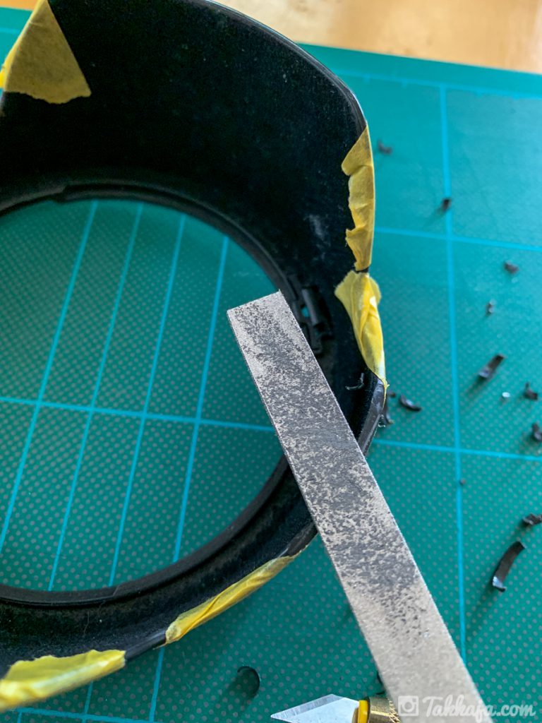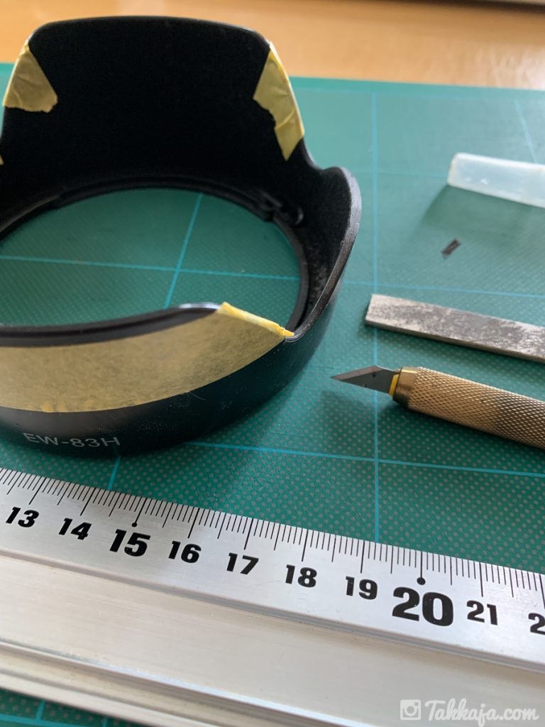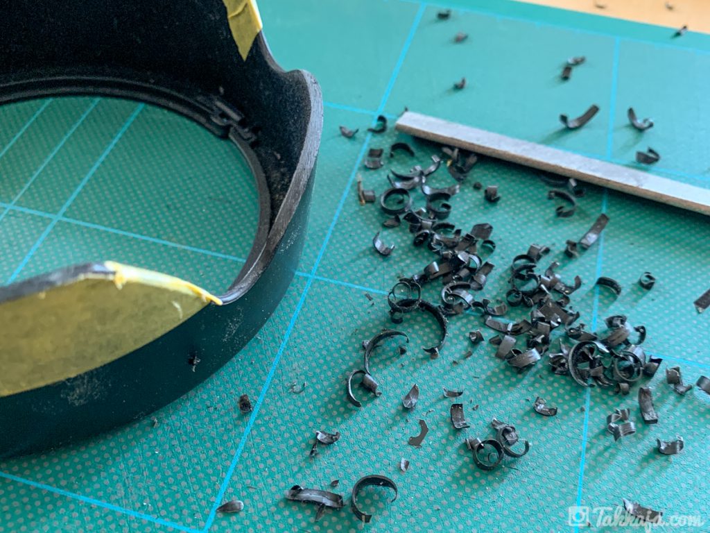 当初は100均のダイヤモンドヤスリで削ろうかと思ってましたが、なかなか先に進まないので、デザインカッターでガンガン削ります