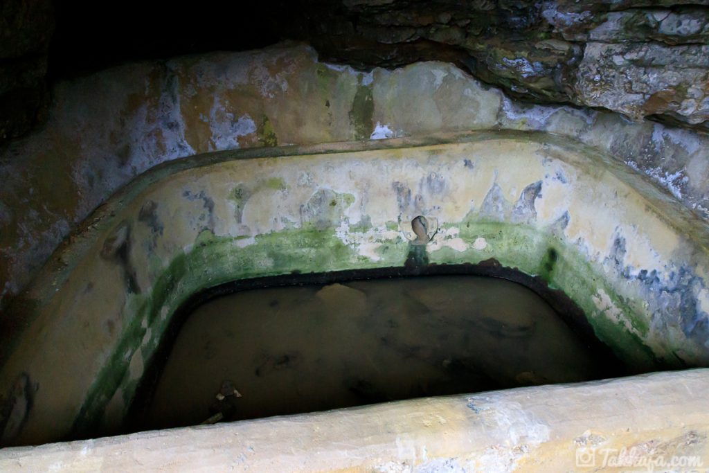 昔津堅島が日照り続きの時、鳩がこの場所でいつも羽根を濡らしていたのを見つけ、その場所を掘ってみると水が湧き出たという話があり、津堅島の水源地として昔から利用されていた場所だとのこと。