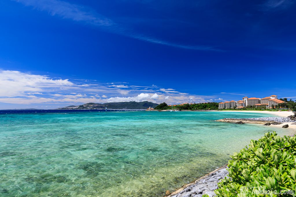 恩納村名嘉真の浜入り口。