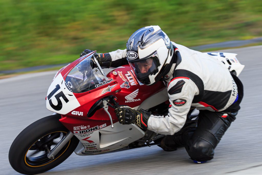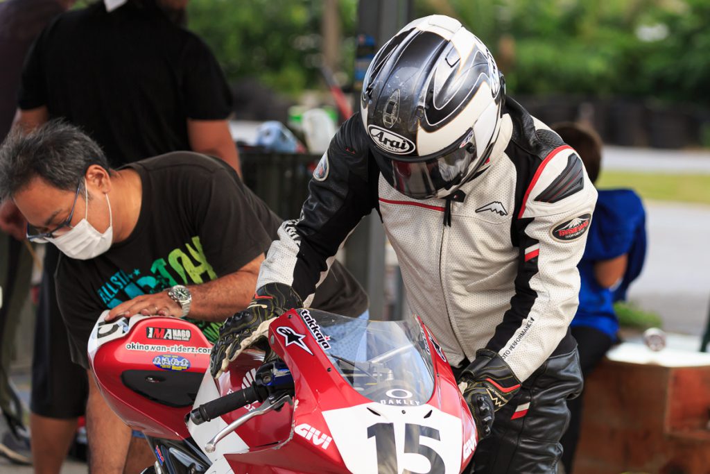 このヘルメットは元WGP500ライダー新垣敏之さんでは??