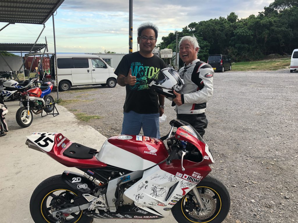 お友達がカワサキの4気筒250を沖縄カートランドで走らせてるという情報が入ってきたので、午後から向かうことに。