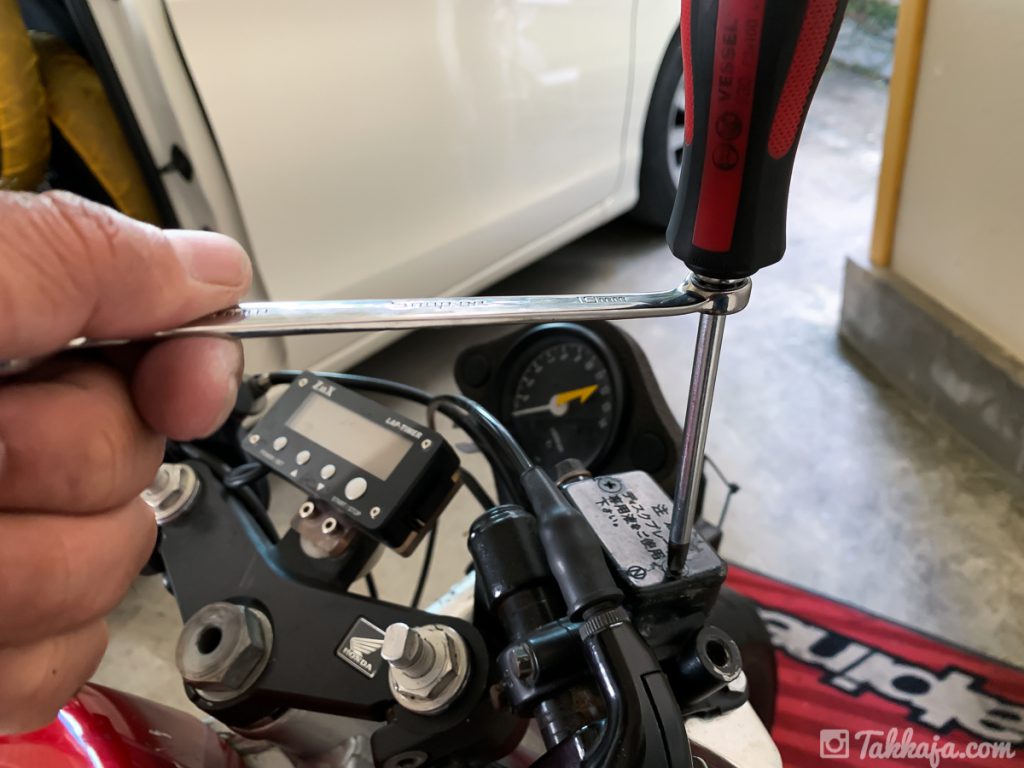 マスターシリンダーの固定位置をギリギリまで内側まで追い込む。