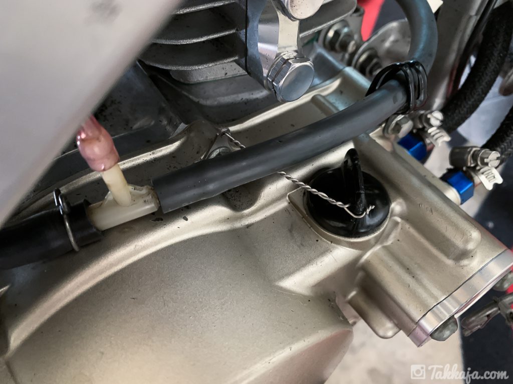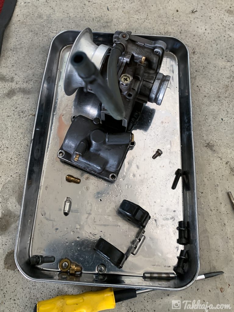 おそらくオーバーフローの原因は、キャブが若干斜めに傾いていたのが原因っぽい。