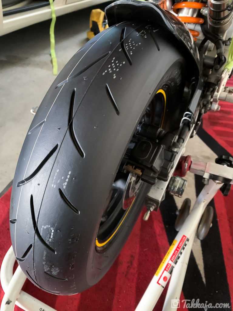 仕上げにスペアホイールは練習用タイヤからレインタイヤへ嵌めかえて