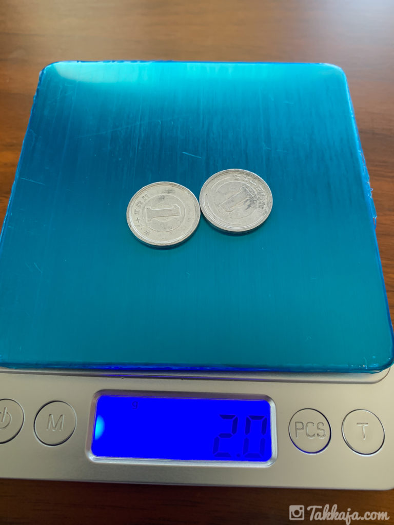念の為1円玉2枚で試してみると、大きな誤差はないようで安心。