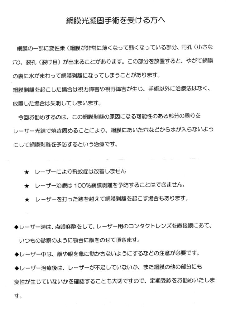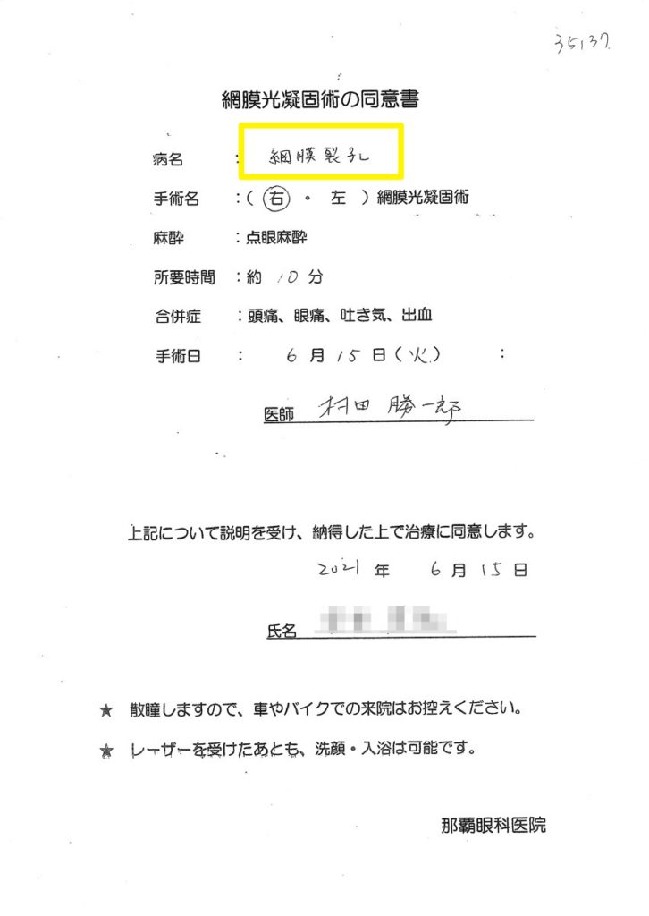 後で調べてみたら、よく聞いたことある網膜剥離の少し手前の症状らしい。