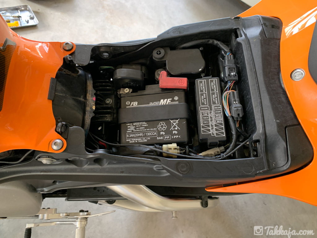 シートを上に持ち上げるとバッテリー出現。