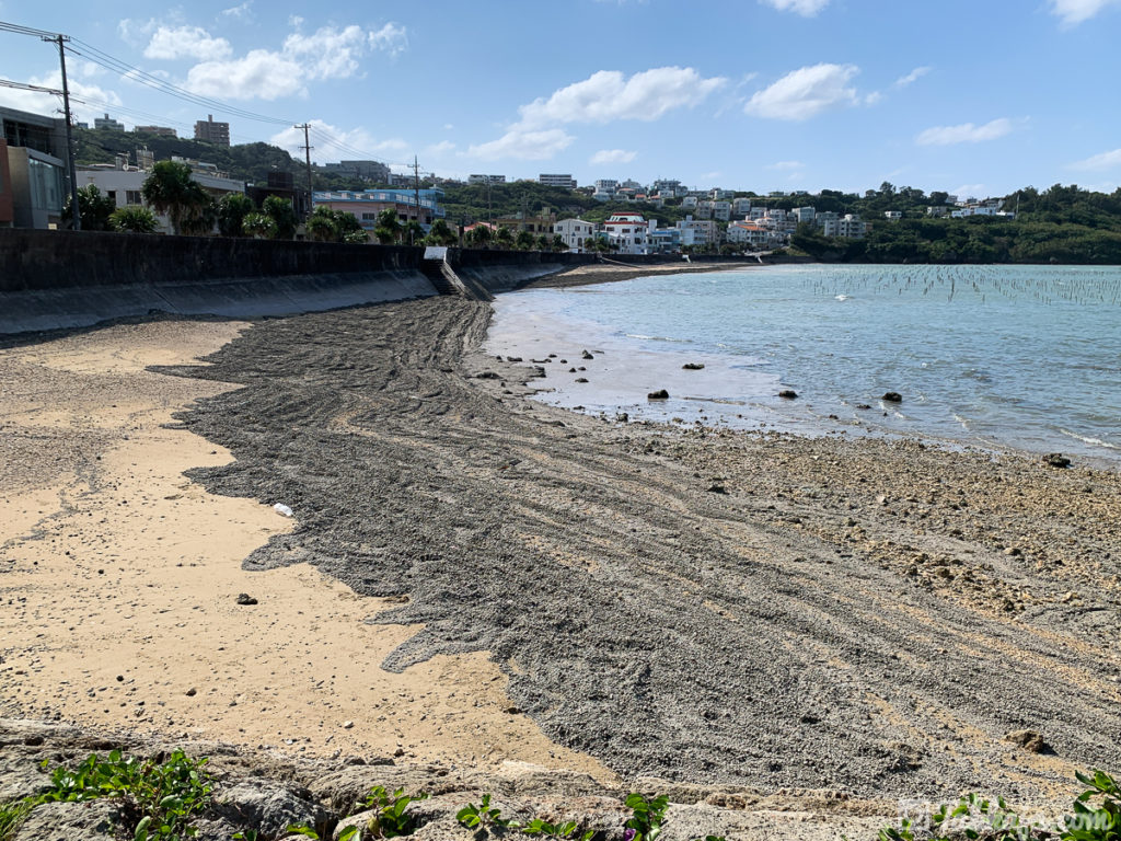 いんぶビーチはビーチ全面が2-30センチの厚みで堆積してました。