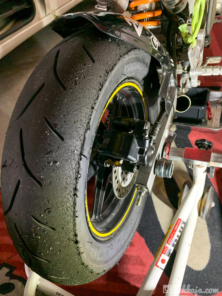ククル練習一回行っただけで、こびり付きまくりのタイヤカス。