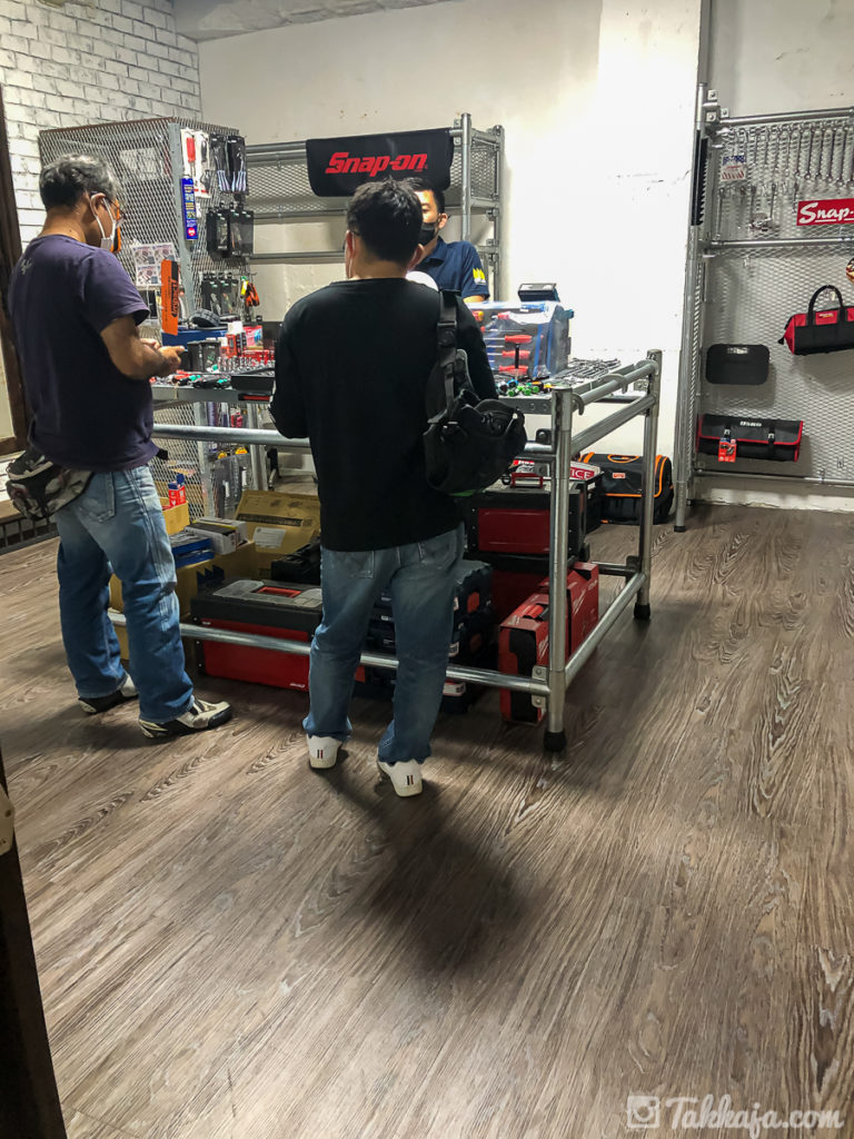 アメリカンな店内で、iPhone使ってタイヤ探しwww