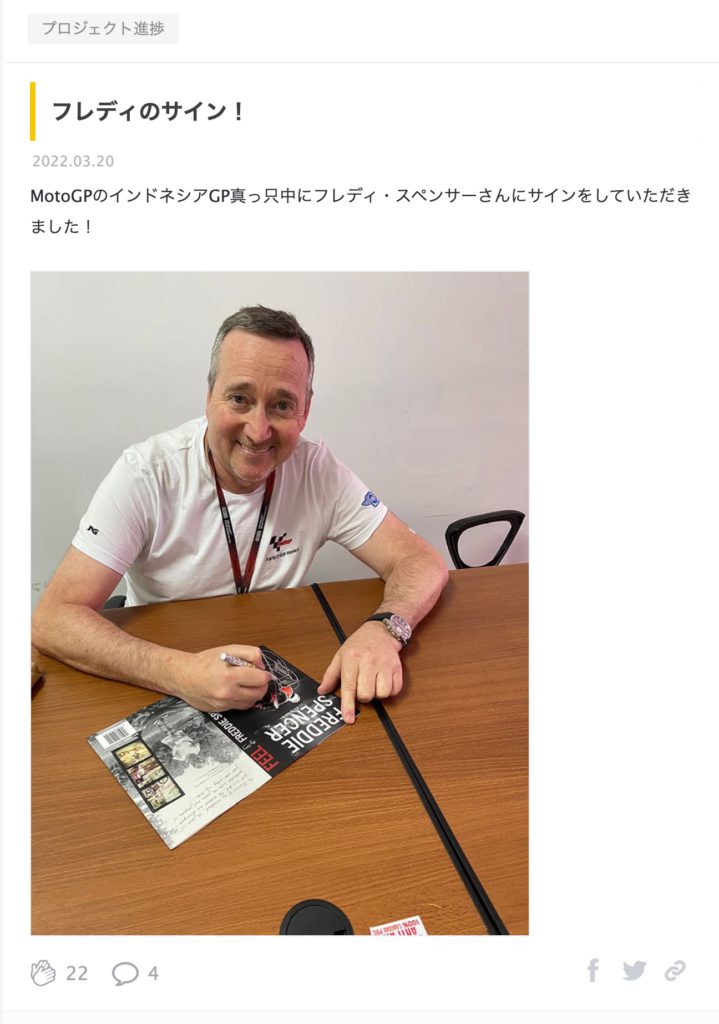 先日行われたインドネシアGPの際にサインをお願いしたようだ。