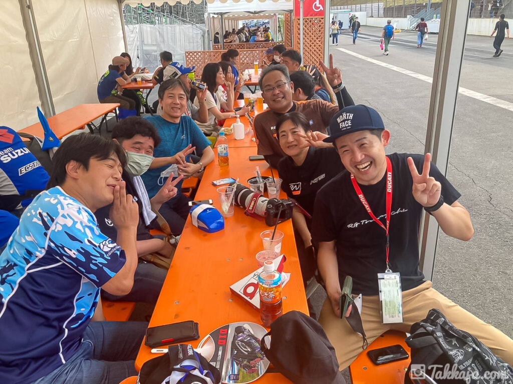 ちょうどお昼時になったので、メインスタンドと仮設のスタンドの間。