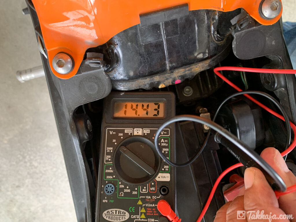 エンジンかけて電圧測定したら、充電も問題なくしているようだ