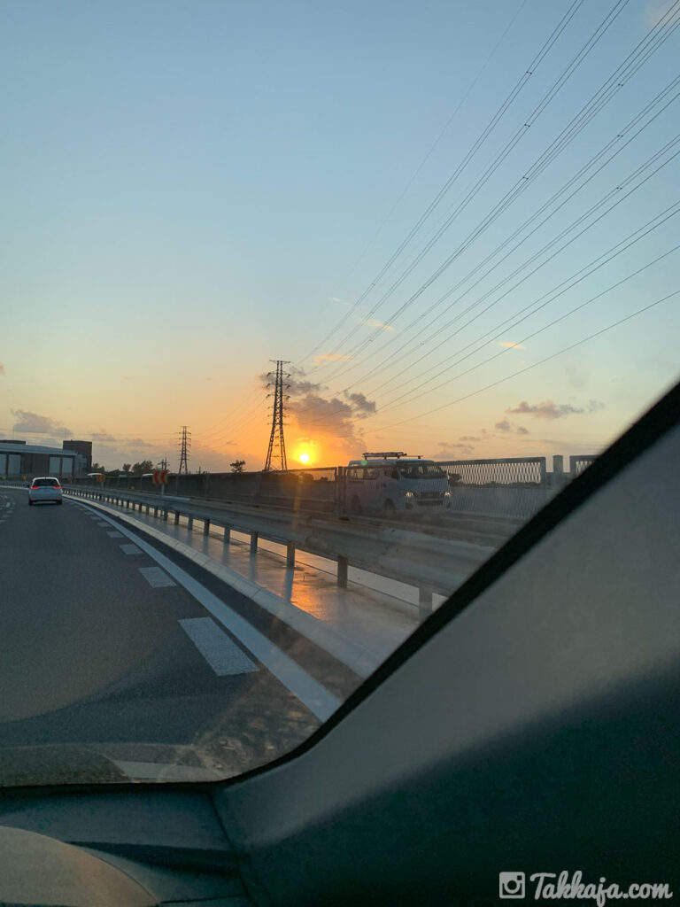 帰りは夕日が綺麗だったけど、高速が強烈に渋滞していて眠気がすごかった