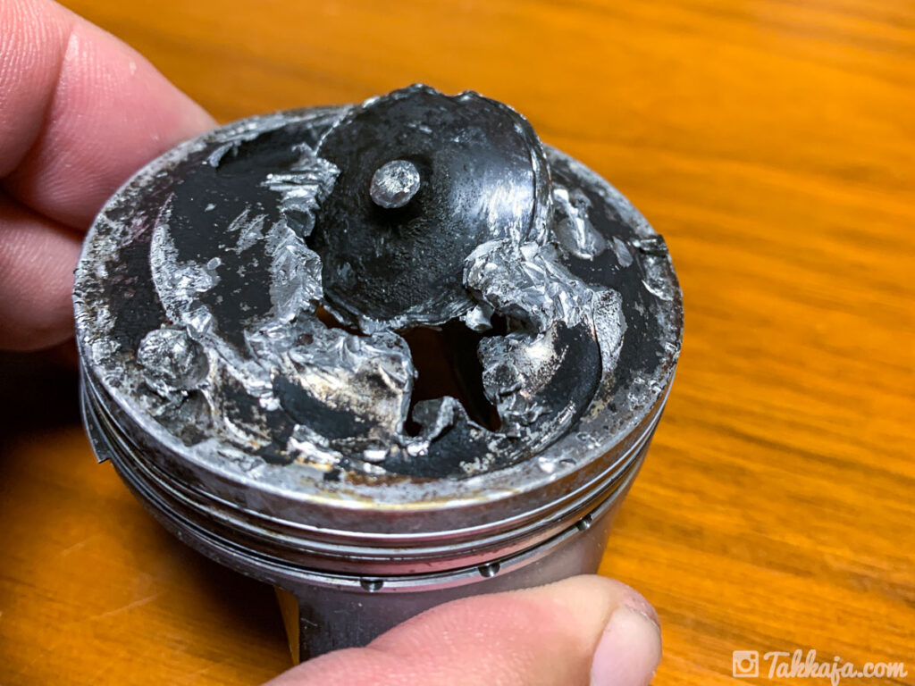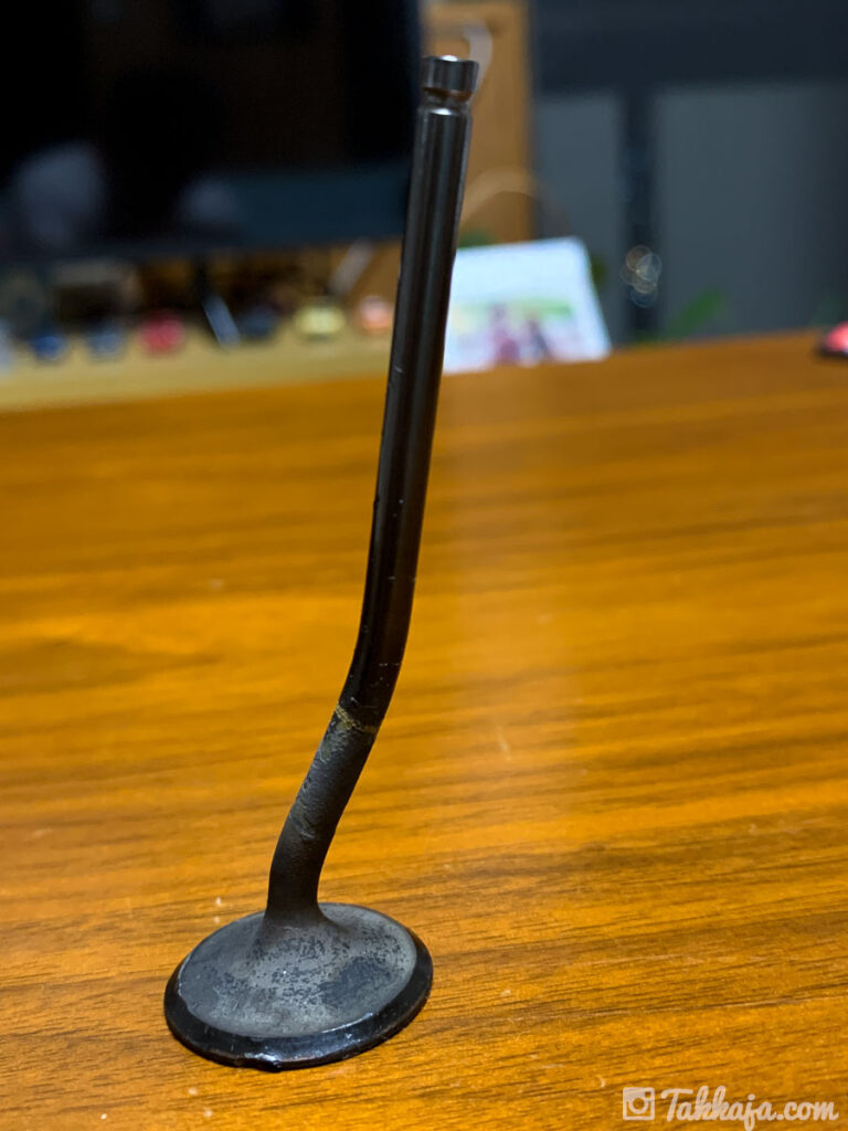 バルブの傘の部分が折れて、ピストンに突き刺さったのは、大きい方の吸気バルブでしたが