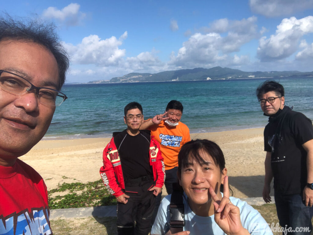 途中、名護市幸喜の名護市民ビーチで小休憩。