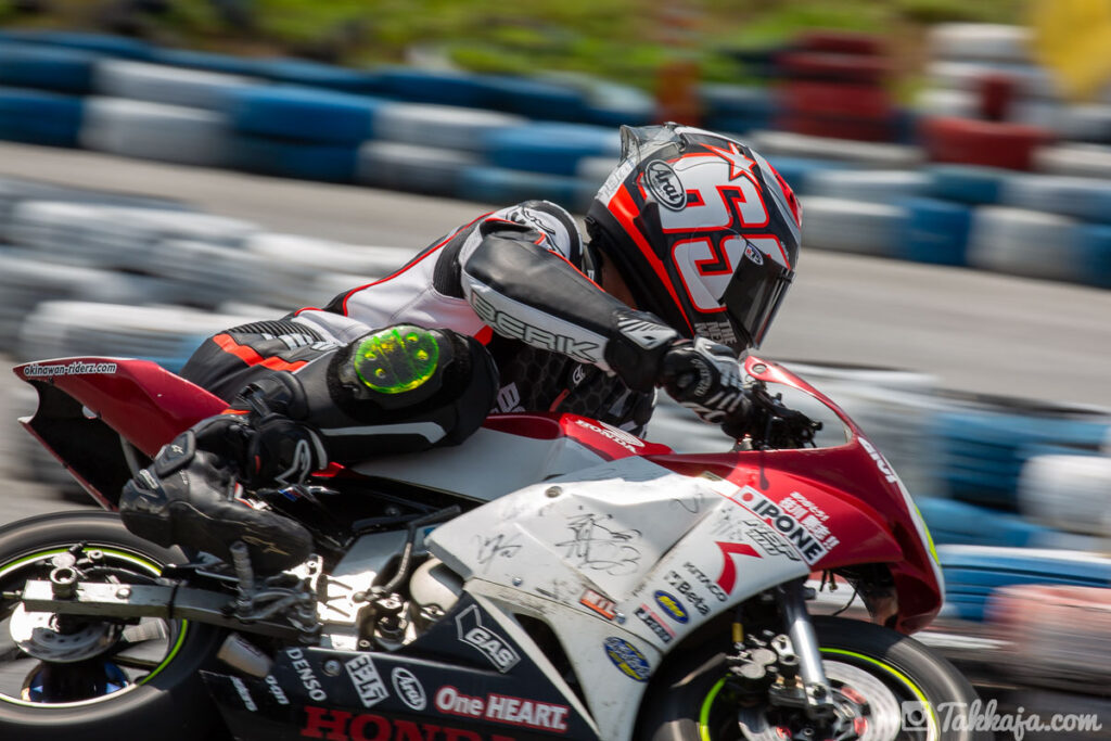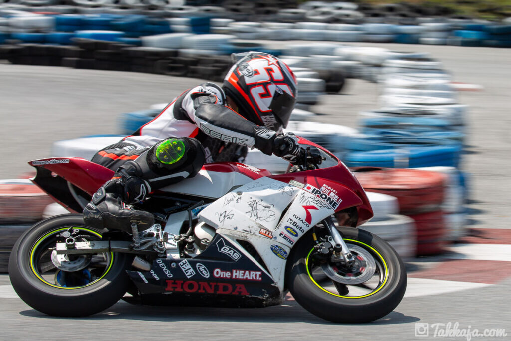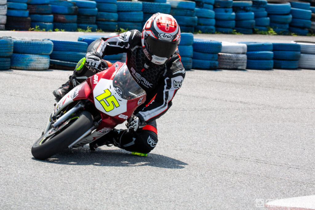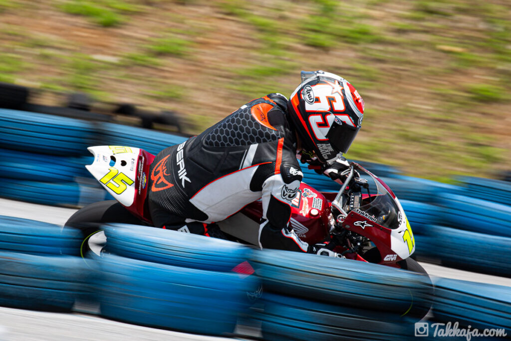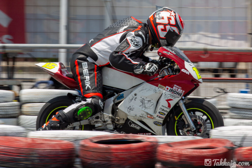 課題のライン取りと、1コーナー後のバンクしながらのブレーキングを意識して走行。