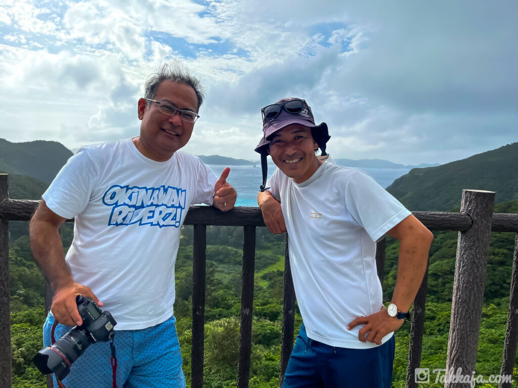 途中で渡嘉志久ビーチが見える場所でバスを止めてくれました。