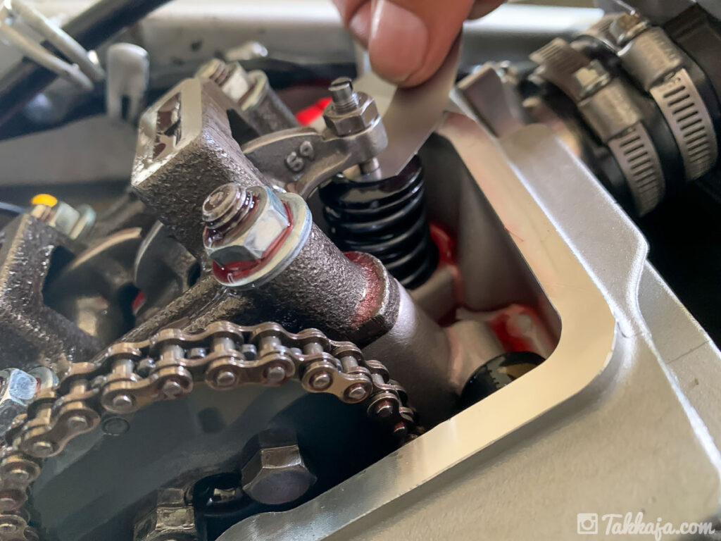 片付けしながらエンジンを冷ましてから、再度タペットクリアランスをチェック。