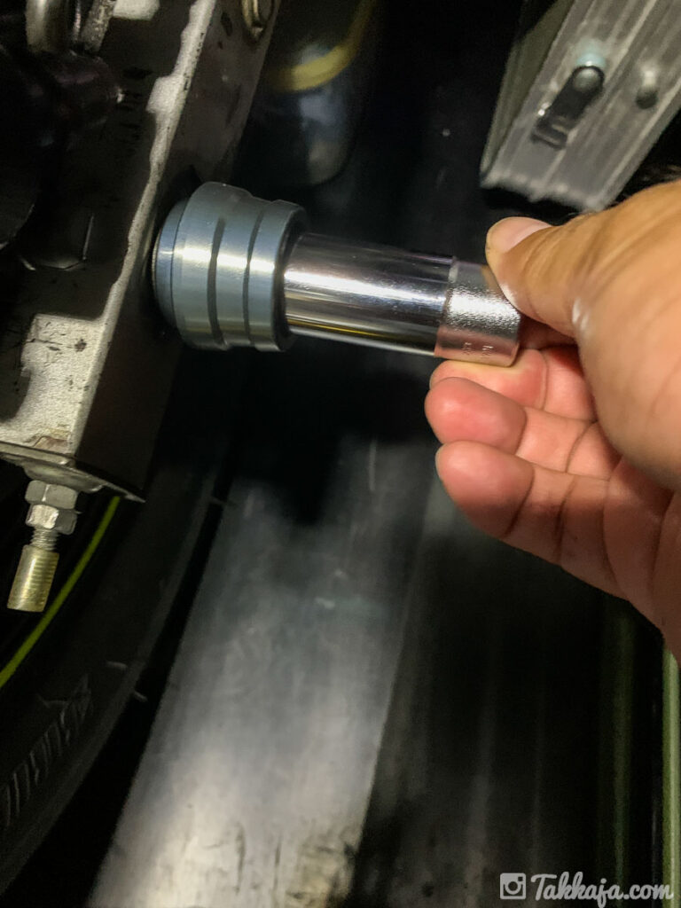 アルミのアクスルガードがなければ、スタンダードのみでもどうにか締めれそうですが、コレがある状態だとディープじゃないと手で回すのは無理。