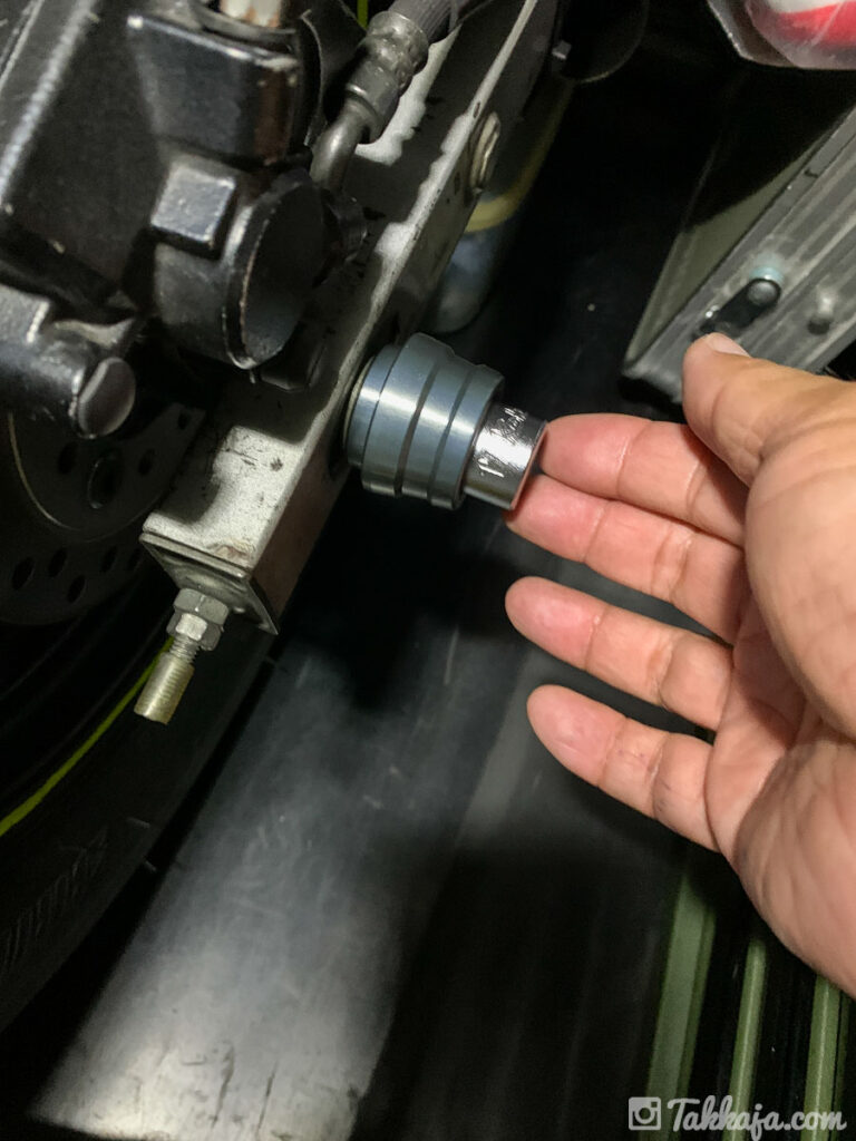 - チェーン調整して、締め込みはディープソケット単体で、早回しで手で締めれるところまで締める