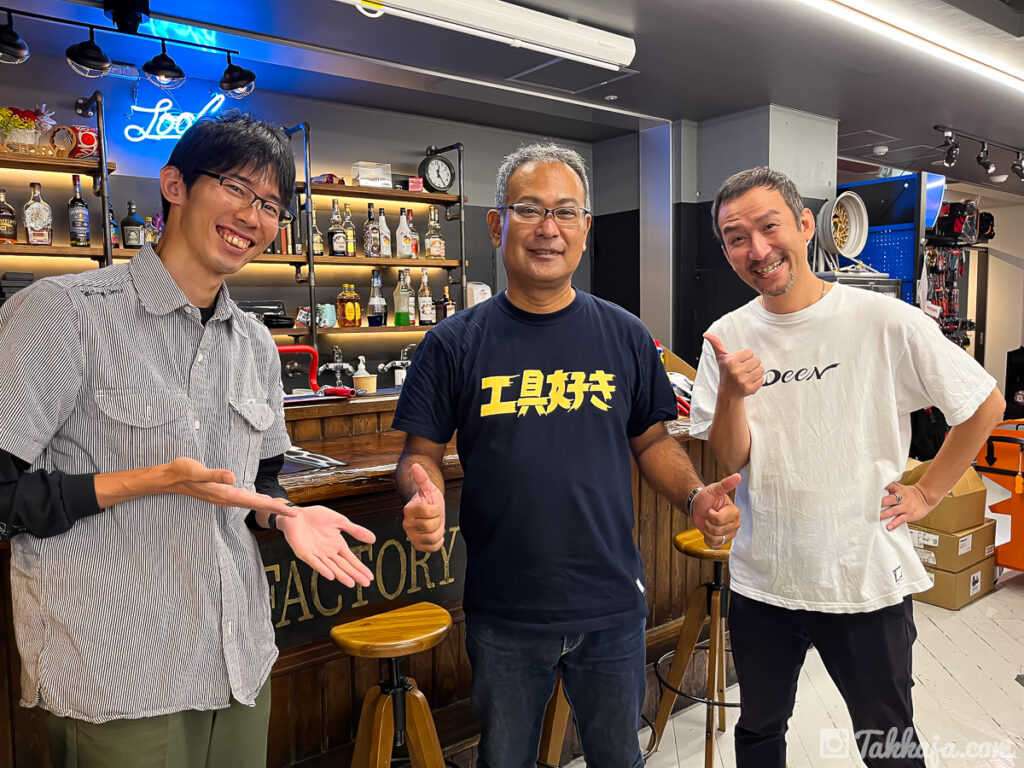 物色後、工具好きTシャツでスタッフさんと記念撮影。