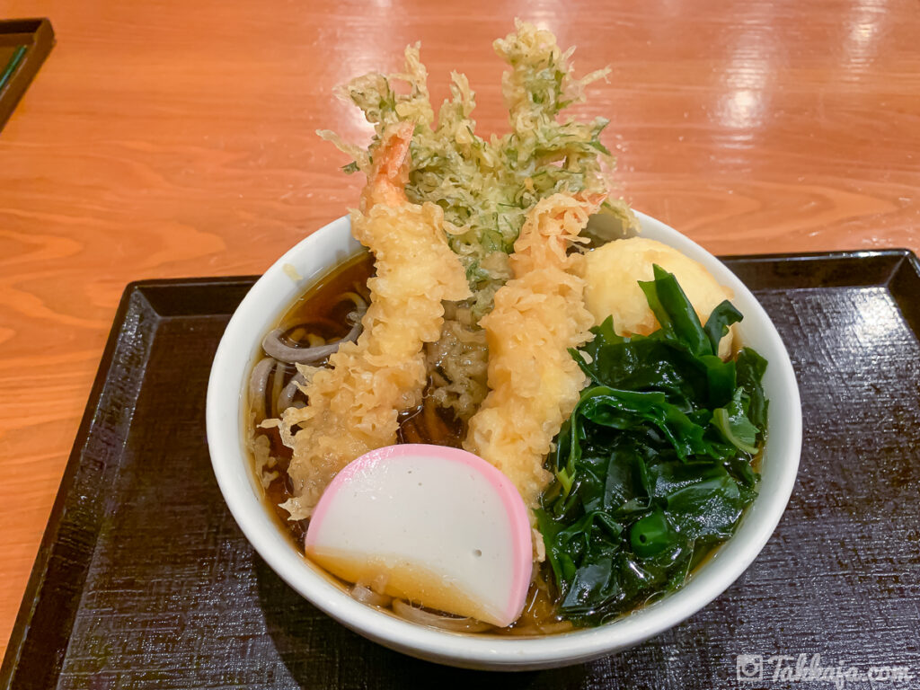 到着後、小腹がすいたので空港内で天ぷらそばを食べる。
