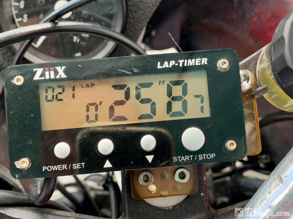 ラップタイマーの電池が減ってきたからなのか、走行後タイムが消えてしまい記録に残ってないけど、記憶にあるベストタイムは26秒2程度。