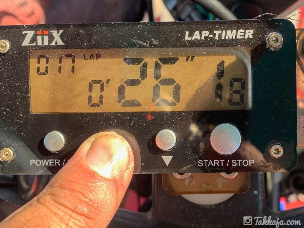 エンジンを組み直した後、2023年10月〜11月前半は走りまくっていて走る度に自己ベスト更新。25秒台に入れて調子に乗っていたのに、その後のコムコム走行会では天気悪くて走行見送り。