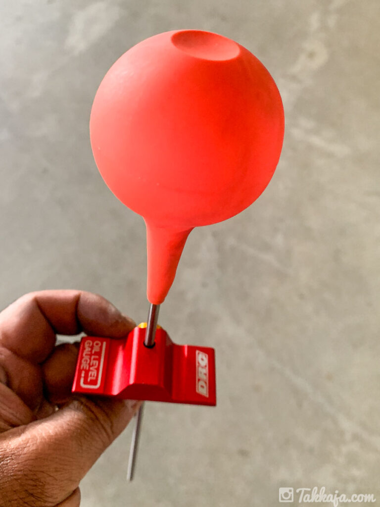 不器用なので、注射器ではなくジェットオイラーを繋げて使っていたのですが、その組み合わせだと、パイプ系が太すぎてなんだかうまく吸えないのよ。