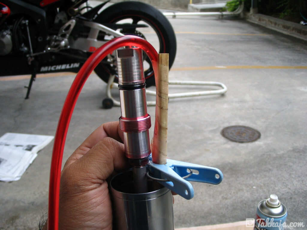 チューブと割り箸と洗濯ばさみとジェットオイラーという、どこのご家庭にも転がっているもので作成した貧乏工具