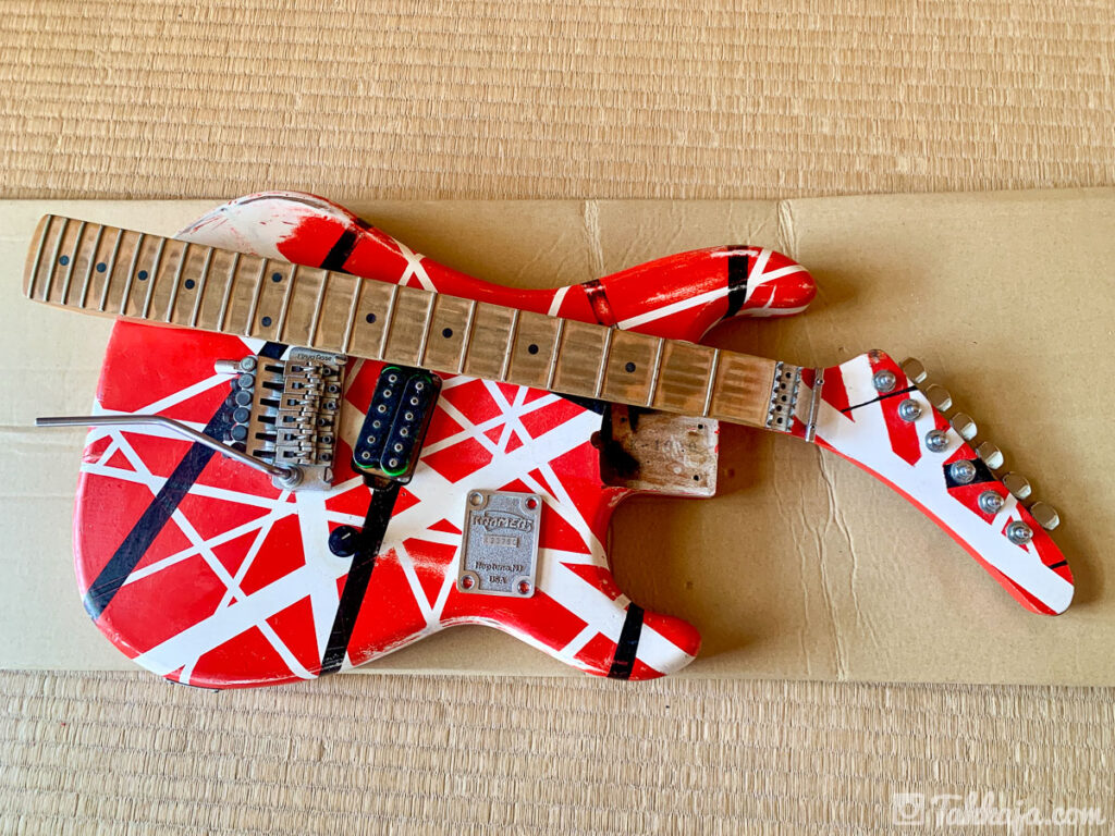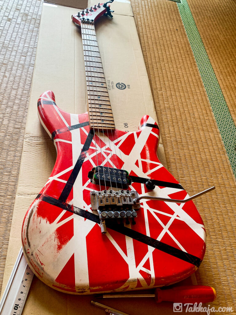 17歳でイングヴェイ・マルムスティーン並のギター回ししてるときにストラップが外れて、音楽室の床に思い切り叩きつけられネックがズレてしまった時、20歳ぐらいのときだろうか、バラバラにして白だったギターをこの色に塗り塗りした時。