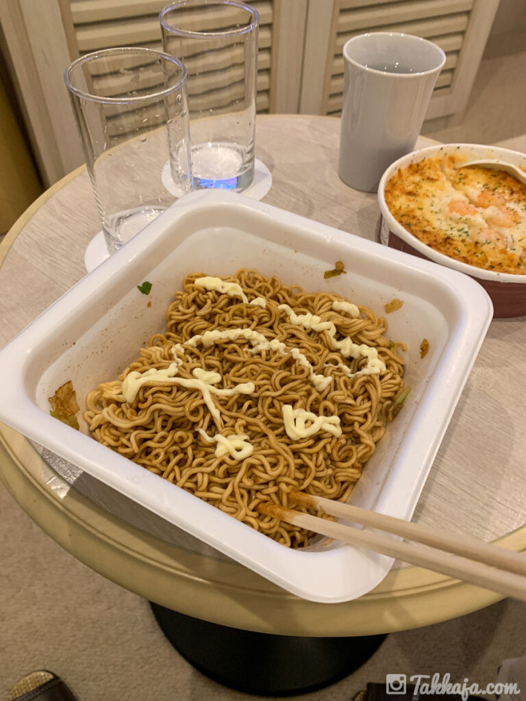 4000円だと流石に素泊まりなので、質素にカップ焼きそば。