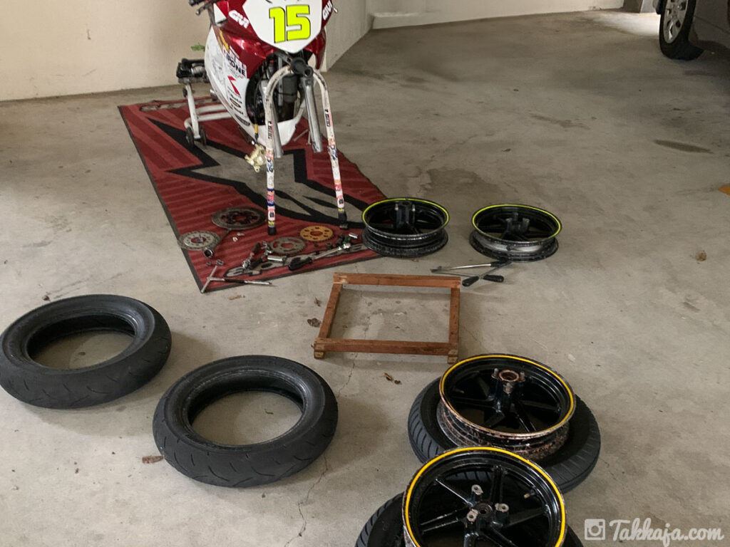 リアホイールの、スプロケとブレーキディスクをあらかじめ組んでおけば、もう少し短縮できそうだから、部品も集めなきゃ。