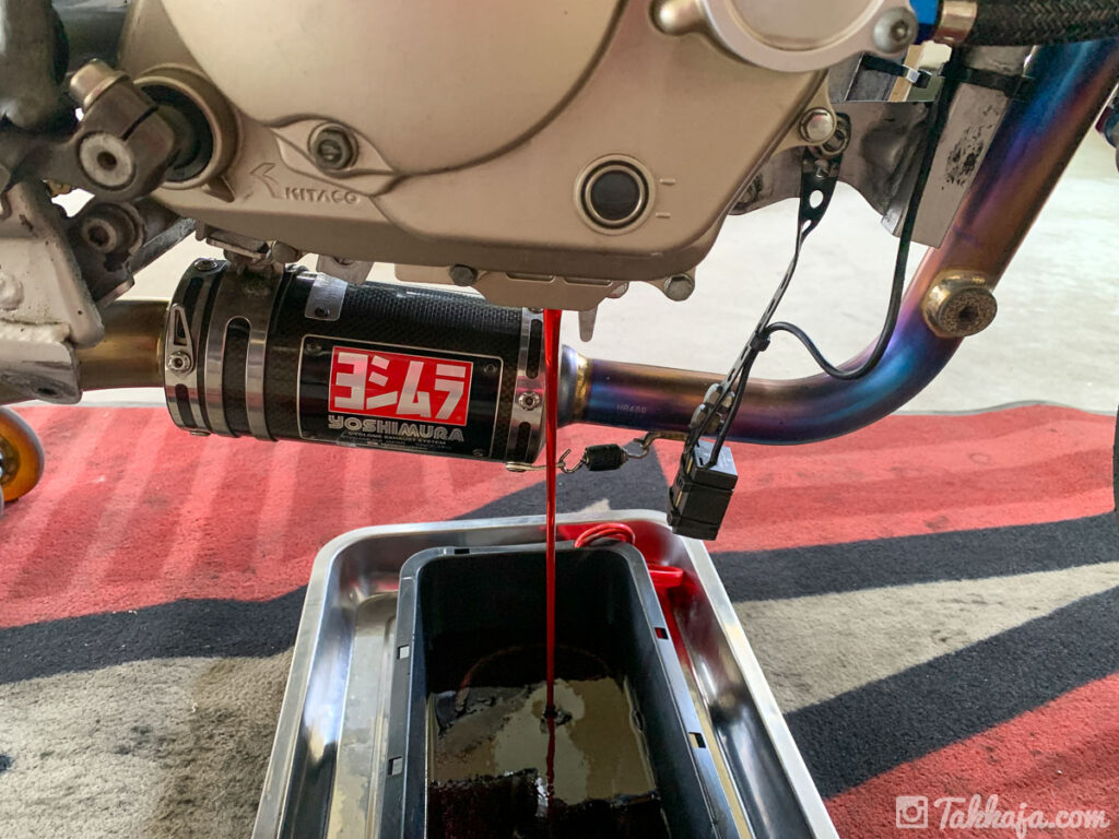 いつもながら罪悪感が半端ない新品のような色で出てくる廃オイル。