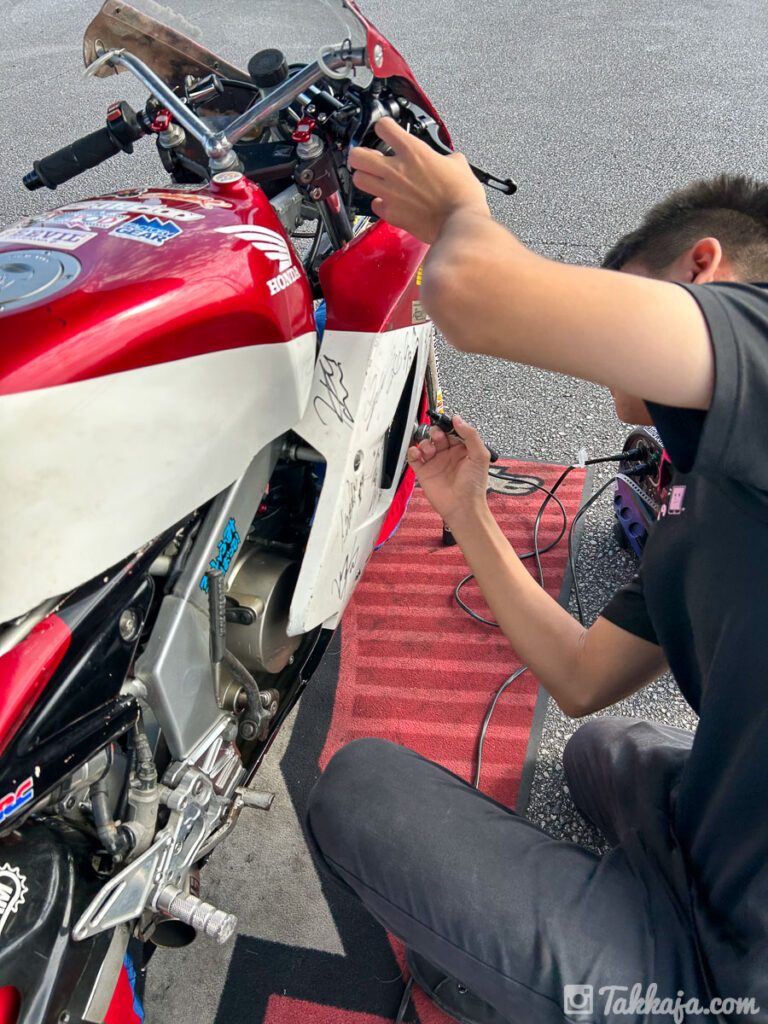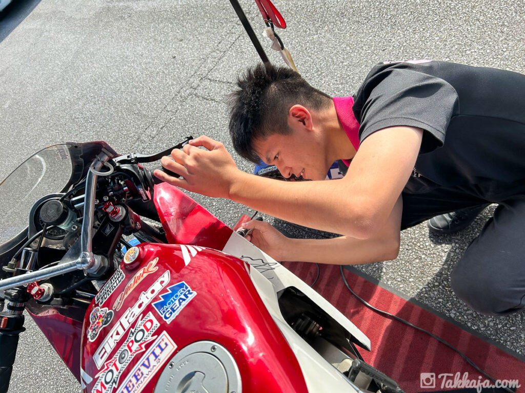 キャブセッティング等を行いちゃんとウォーマーかけて準備。