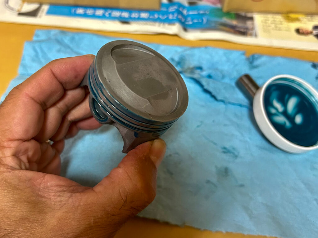 先日購入した組み付けペースト塗り塗りしてピストンリング組み付けます。