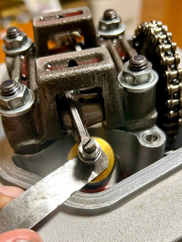 仕上げのバルブクリアランス調整。擦り合わせしたので少し変化してました。