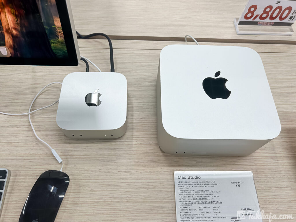隣の旧Mac mini(と同じ大きさのMac Studio)と比べても大幅に小さい・・・