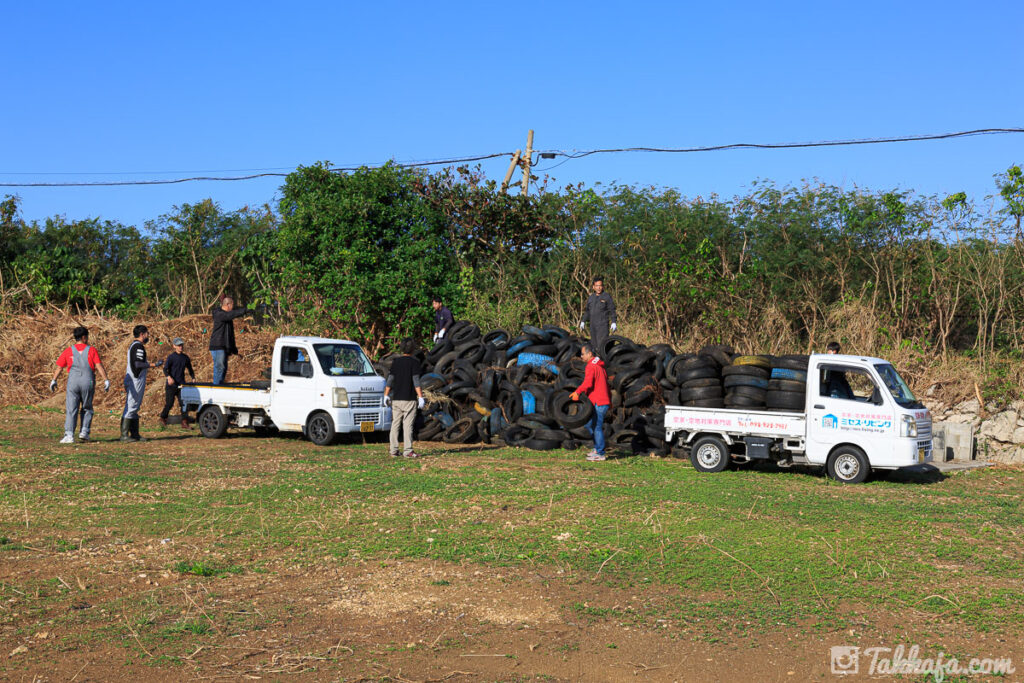 タイヤを運んで設置