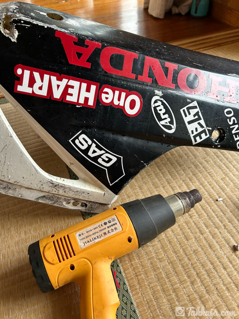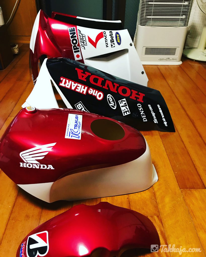 前回のレースまでに、ぼろぼろになってしまったNSF100の外装。