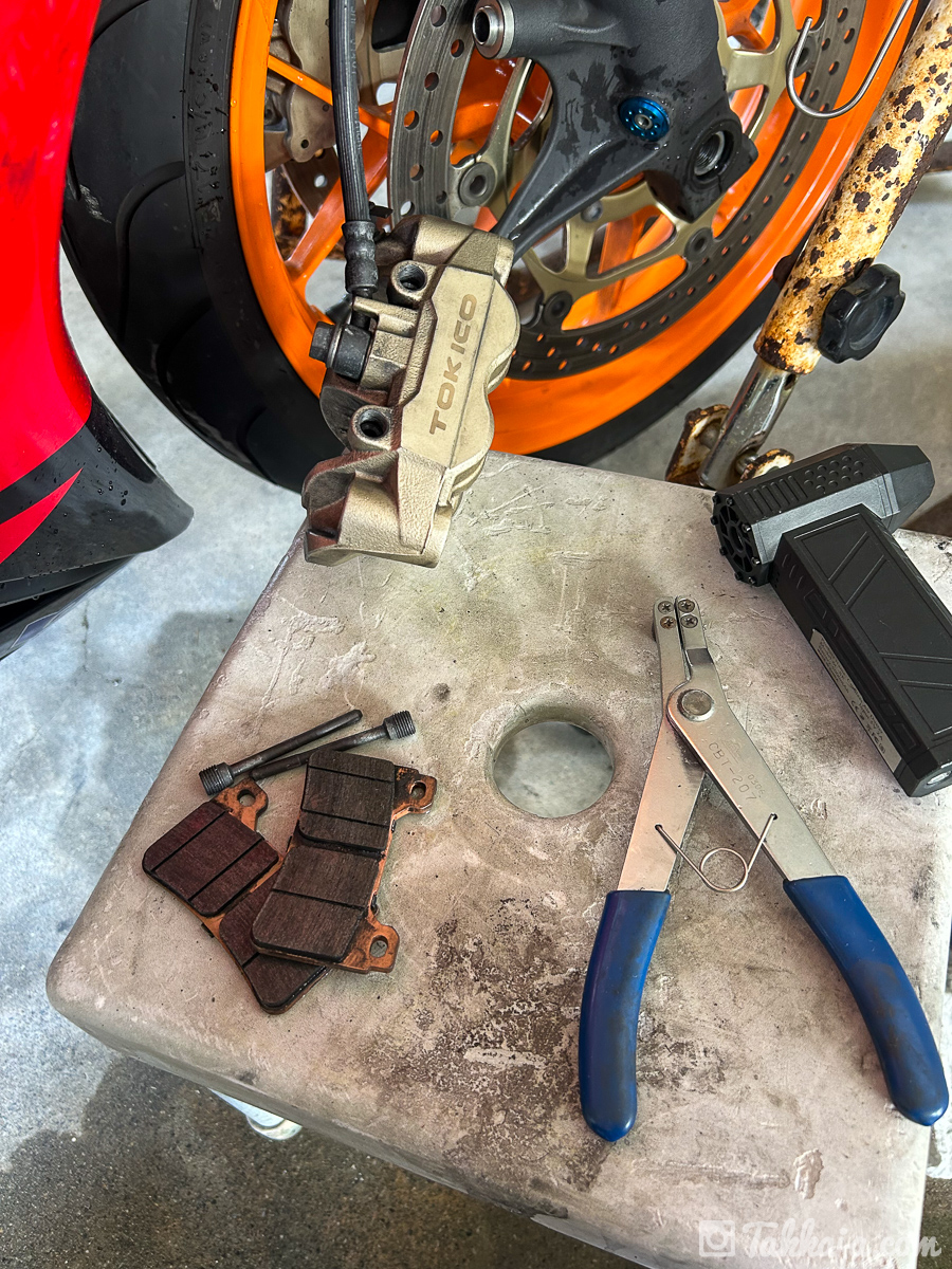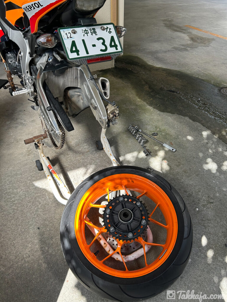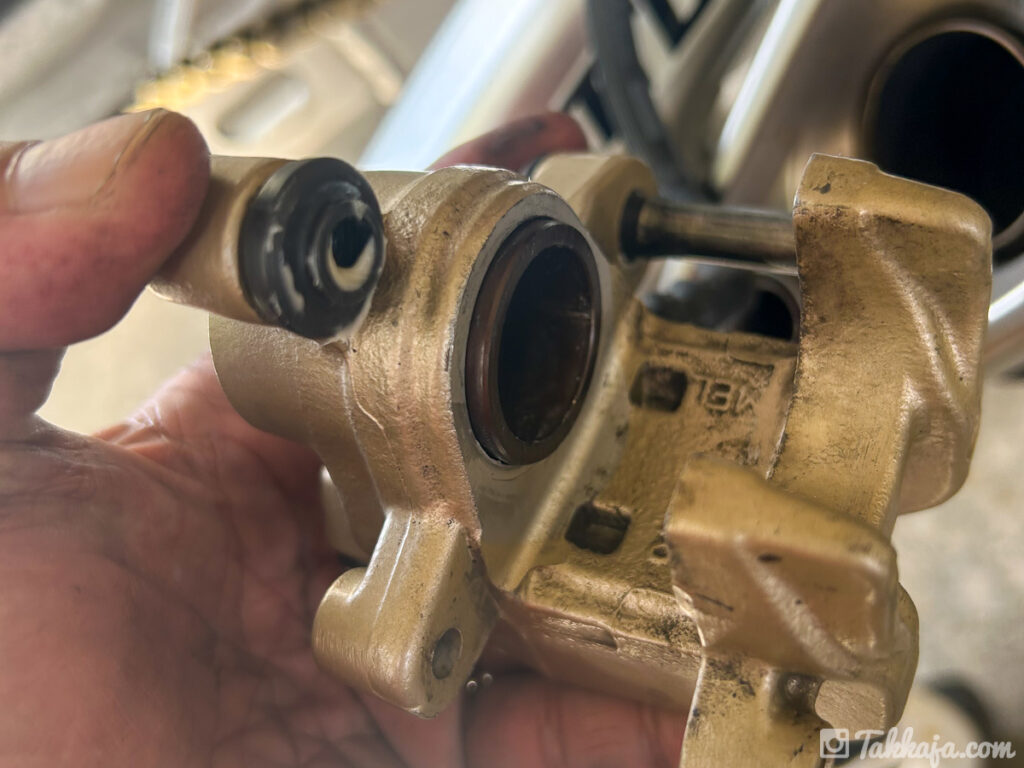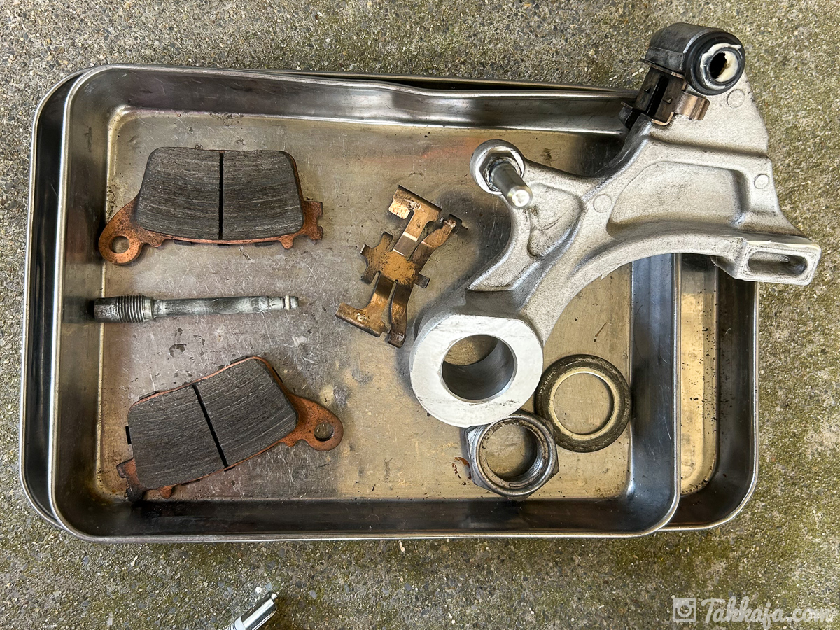 リアタイヤとリアブレーキキャリパーも外して